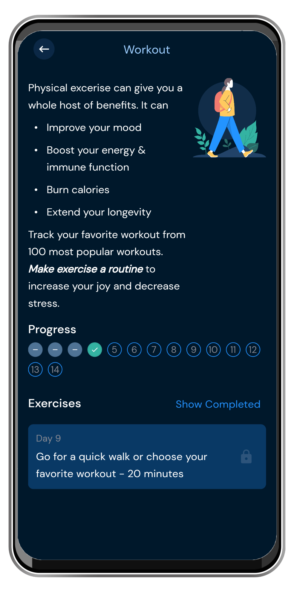 Every exercise has a goal, for example ‘Work out for 20 minutes'