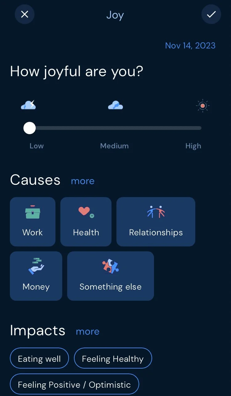 Check what’s causing you joy and see the impacts on your body. This important exercise shows your micro causes of joy which you can expand on. Watch the changes in your body, mind and emotions as you move towards joy by tracking the impacts of joy.